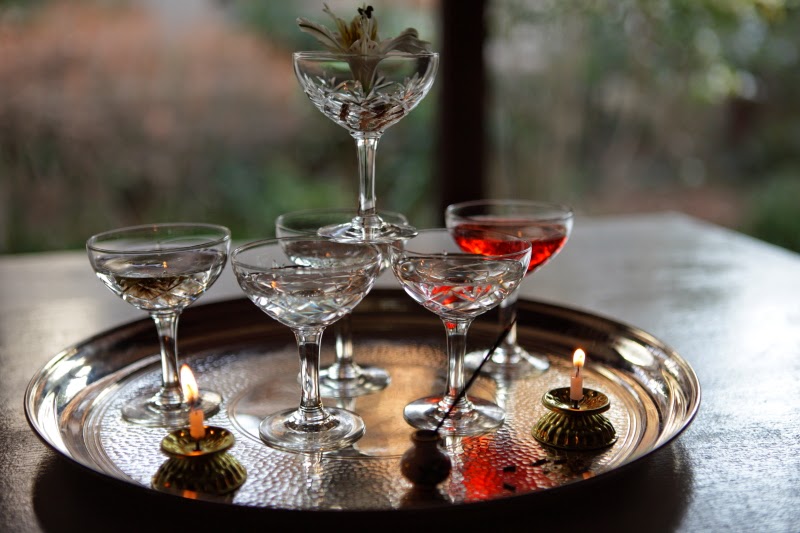 2) Place the glass together with other empty glasses to form a cocktail tower.
